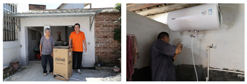 此次捐贈(zèng)的法羅力電熱水器,配置高溫抑菌功能,可有效抑制細(xì)菌,而且由公司提供送貨上門、安裝調(diào)試和后期維修一條龍服務(wù)。夏日驕陽(yáng),熱浪翻滾,卻也擋不住我們服務(wù)的熱情,目前,部分熱水器已安裝調(diào)試完畢并投入使用,受捐家庭紛紛表達(dá)他們的感謝之情。